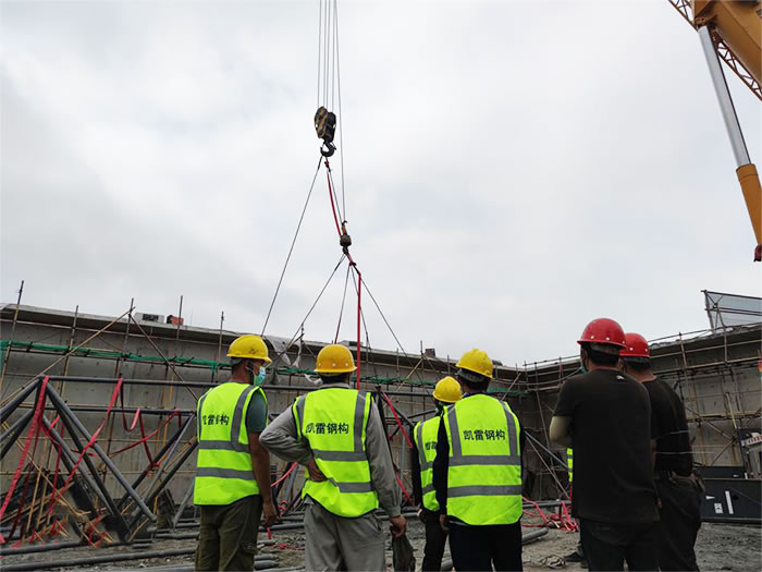 6.为确保.乐山加油站球形网架安装顺利,应有详细的乐山施工组织设计。网架安装必须保证结构的稳定性和不产生的附加变形。